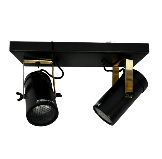 Dwa regulowane reflektory w matowej czerni, osadzonej w eleganckiej prostokątnej bazie, pozwalają skierować światło dokładnie tam, gdzie jest potrzebne. Subtelne, złote akcenty nadają konstrukcji wyrafinowanego charakteru, a technologia DTW (Dim to Warm) umożliwia płynną zmianę temperatury barwowej podczas ściemniania - od jasnego, chłodniejszego światła po ciepły, nastrojowy blask.