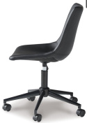 Wyjątkowo udane wyczucie stylu w postaci tego obrotowego krzesła biurowego. Tapicerowane siedzisko kubełkowe pokryte czarną sztuczną skórą łączy styl z połowy stulecia z nowoczesnym komfortem.