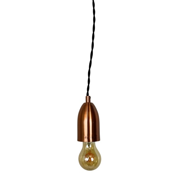 Lampa posiada prostą, metalową oprawę w kolorze miedzi oraz dekoracyjny przewód w oplocie. Jej wyjątkową cechą jest płytki gwint, dzięki czemu żarówka wystaje mocno poza oprawe. Dodając wyjątkową, stylową żarówkę z ozdobnym żarnikiem lub fikuśnym kształtem otrzymujemy unikatową designerską lampę, którą łączy prostotę i elegancję z nieszablonowymi pomysłami. Doskonale sprawdzi się w pojedynkę, ale też w zestawieniu kilku egzemplarzy obok siebie - np. nad stołem, wyspą kuchenną czy w kawiarnianej aranżacji.