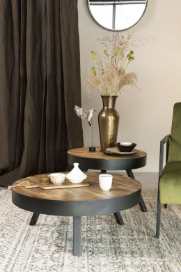 OUTLET Stolik kawowy z drewna mango okrągły skandynawski styl minimalizm