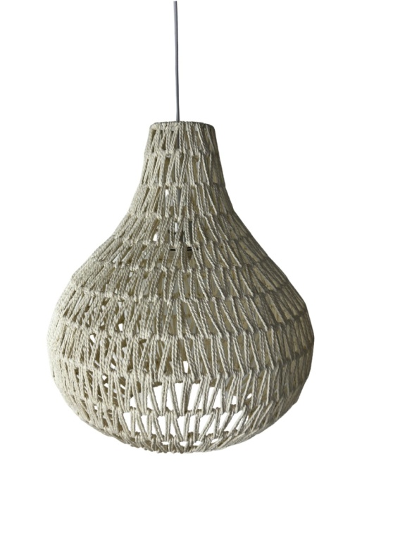 Lampa wisząca Zuiver Cable Drop to przykład nowoczesnego oświetlenia, które łączy funkcjonalność z artystycznym wyrazem. Misternie wykonany klosz z drucianego szkieletu i skręcanego papieru tworzy lekką, przestrzenną formę, która po zapaleniu światła rzuca elegancki, dekoracyjny wzór cieni na ściany i sufit.