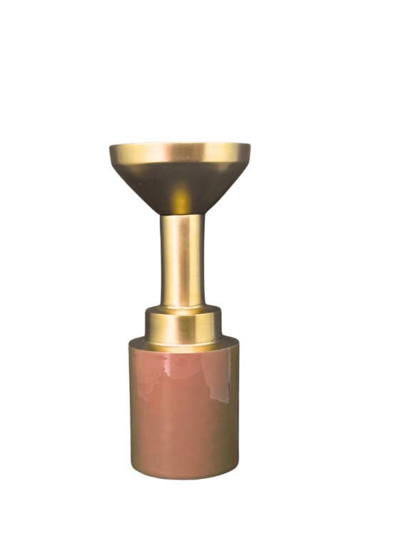Świecznik Glam M to połączenie elegancji i nowoczesnego stylu. Stabilna podstawa w odcieniu pudrowego różu zestawiona została ze złotą górą, tworząc wyjątkowy kontrast i szykowną formę. To dodatek, który pięknie podkreśla blask świec, wprowadzając do wnętrza przytulność i subtelny glamour.